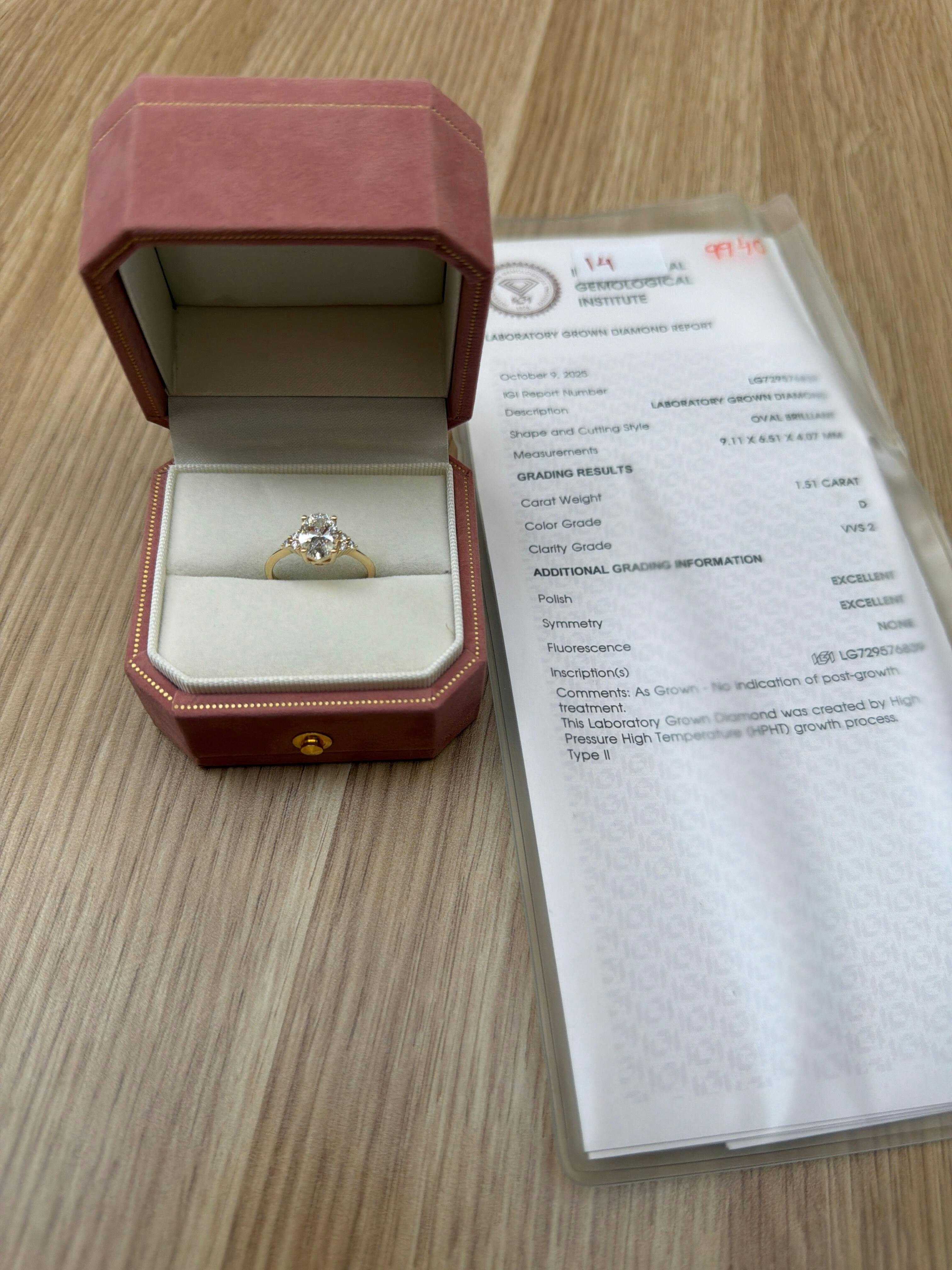 1.34ct Oval Lab Grown Diamond (Colour G, Clarity VS2, IGI Certified)