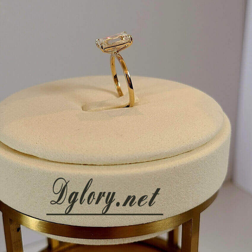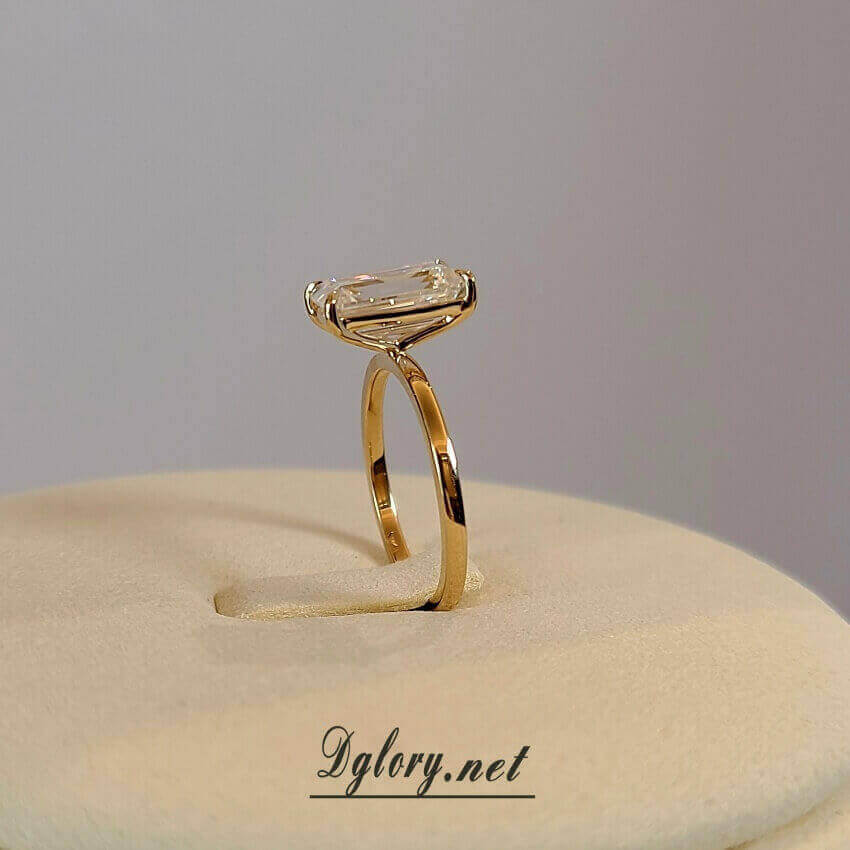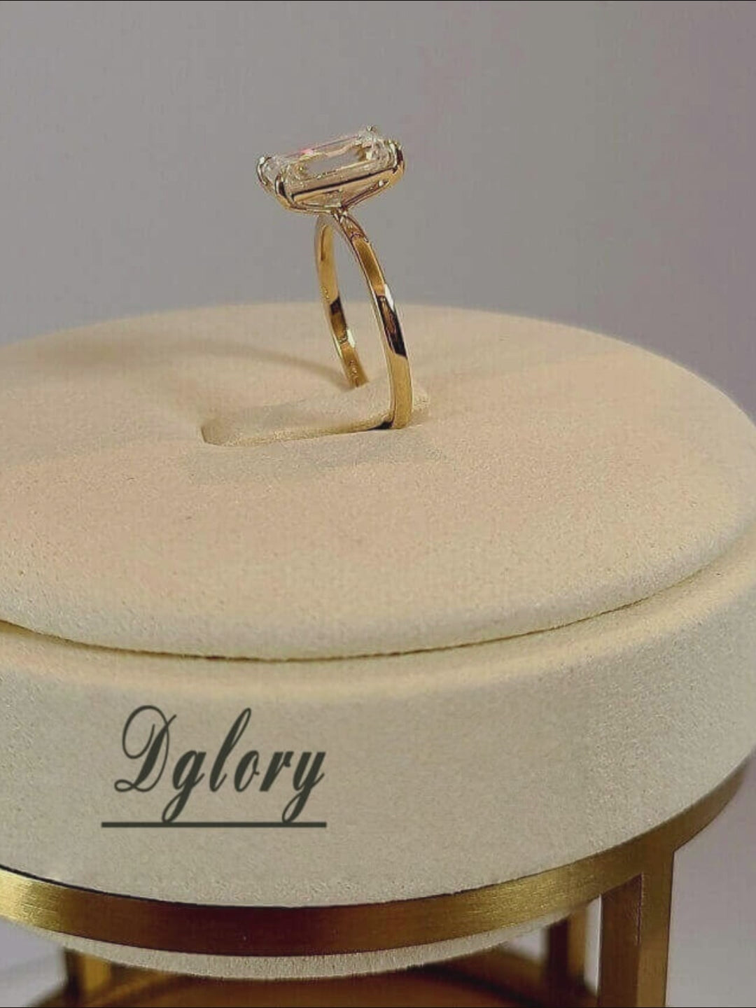 14K Yellow Gold Moissanite 6x10mm Emerald Cut Moissanite Plain Setting,Moissanite Engagement Ring, GRA Certified, Plain Band, Gift for Her