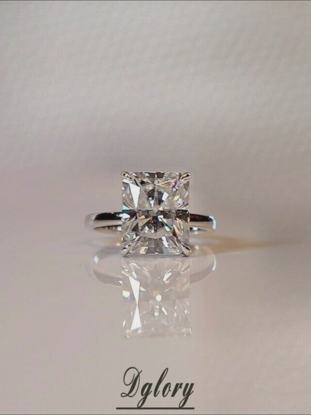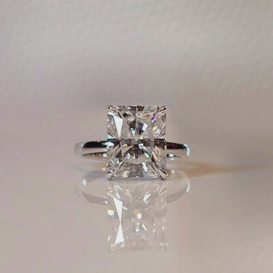 14K 4CT Radiant Moissanite Cut 8x10mm Hidden Halo 8x10mm , Moissanite Engagement Ring, GRA Certified, Plain Band, Gift for Her, Radiant Cut