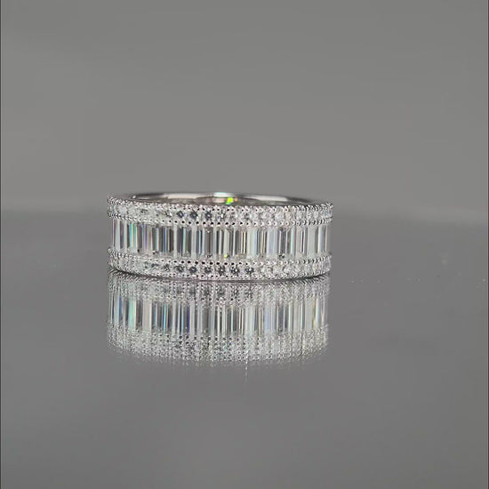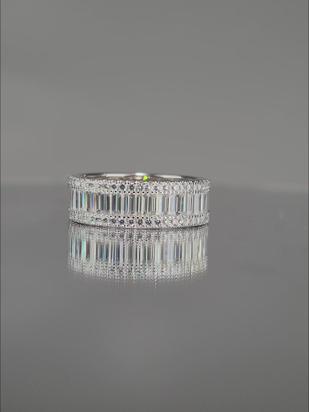 Moissanite Silver-3D Setting,Eternity Mens Ring,S925 Sterling Silver,Eternity Band Rings Jewelry Ring for Men,Gift for Him, Men Wedding Band