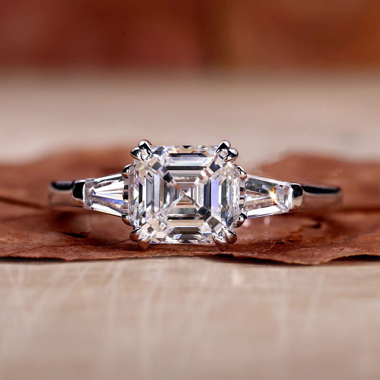 TIKTOK LIVESTREAM Deposit 3CT Asscher Cut, 4K yellow Gold IGI Certified, Side Baguette customization ring size 7