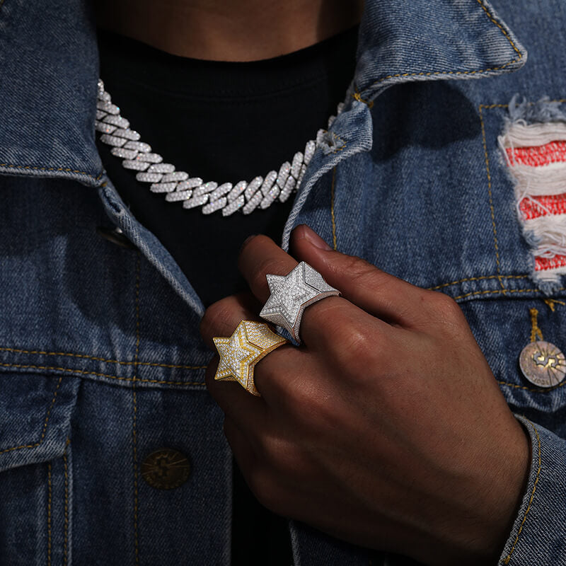 Moissanite Silver Star Ring,S925 Sterling Silver,Ring for Men Moissanite Star Ring,Hip Hop Ring,Iced Out Star Ring, Gift for Him,Men JewelryClassic (BMS119)