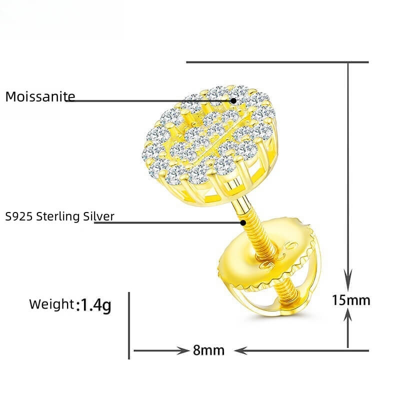 Classic Men's Studs Earrings Black Moissanite S925 Sterling Silver (BMS128)