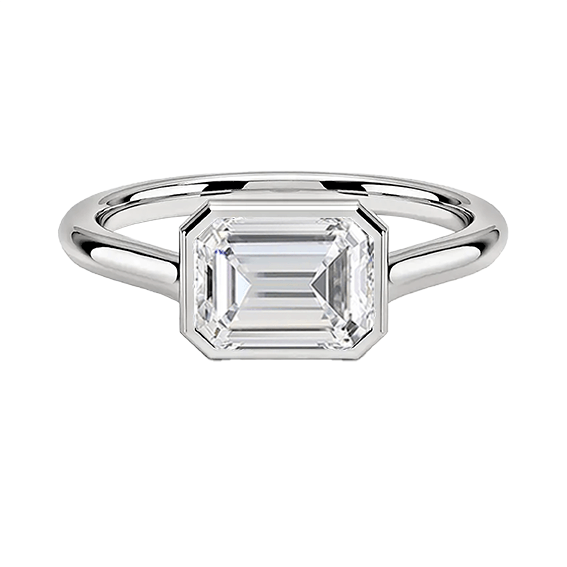 14k 2.5ct E VVS2 East-West Bezel Solitaire Engagement Ring Emerald Cut Plain Engagement Ring Lab Diamond (EM 4120)