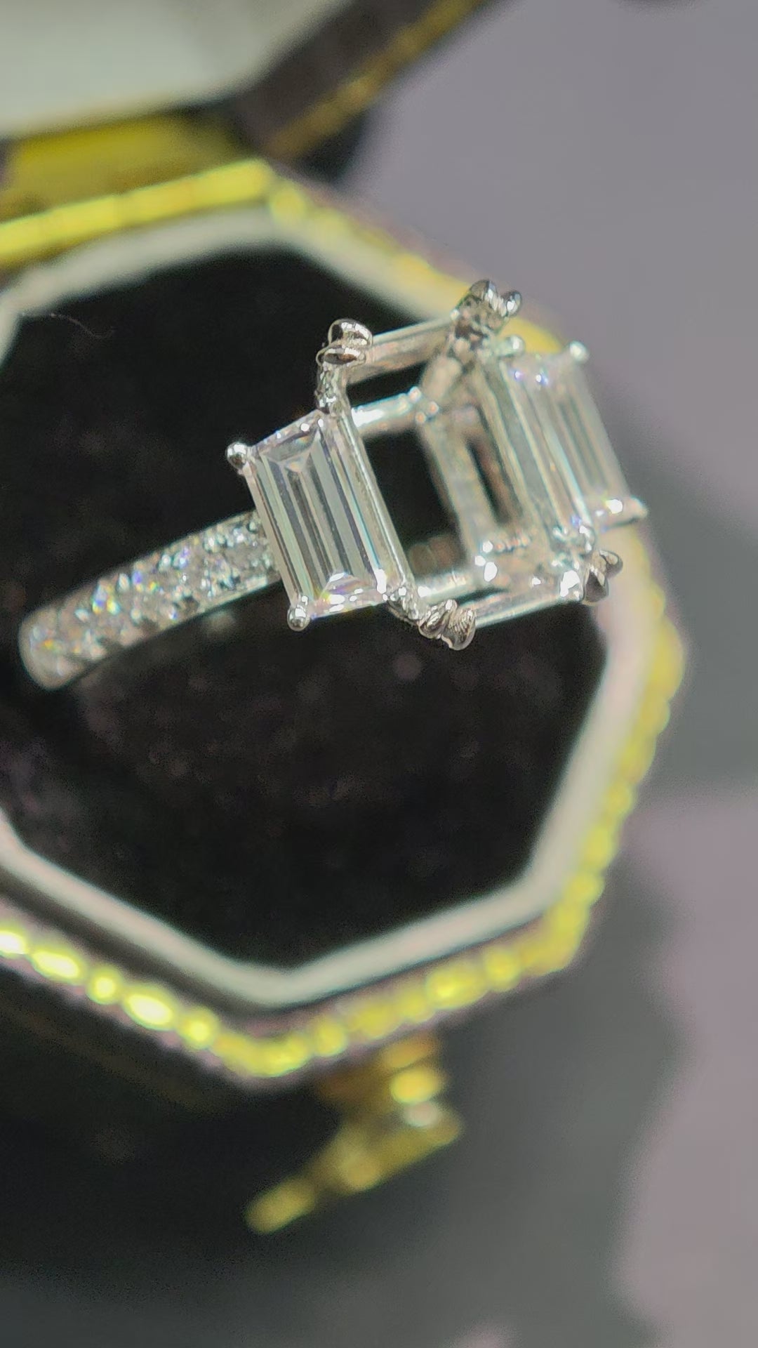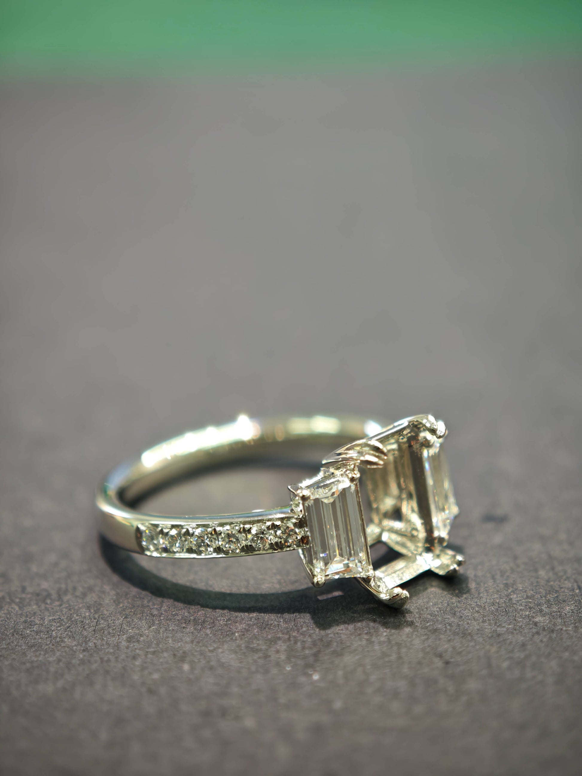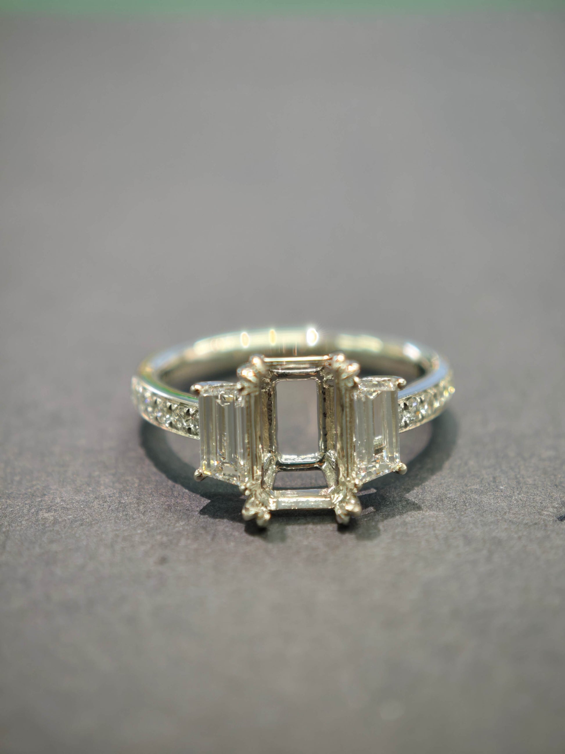side stone: Two Lab-Created Emerald Cut Diamonds, 0.68 TCW