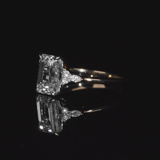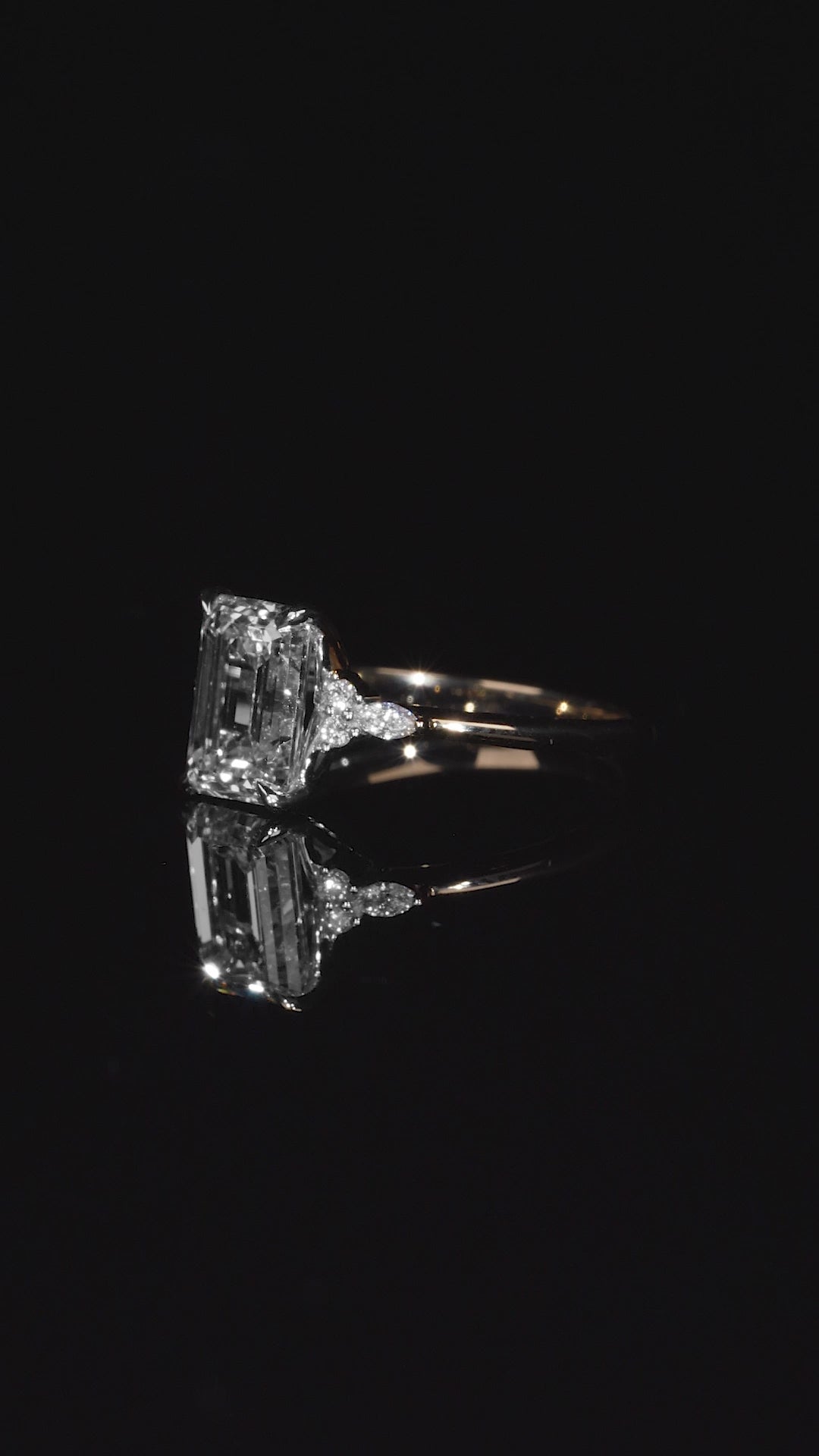 Lab Diamond Engagement Ring, 14K Gold, 2CT, F VS1, Emerald Cut,IGI Certified,Engagement Rings,Side Marquise Round Cluster,1 Marquise 2 Round (ST 0010)