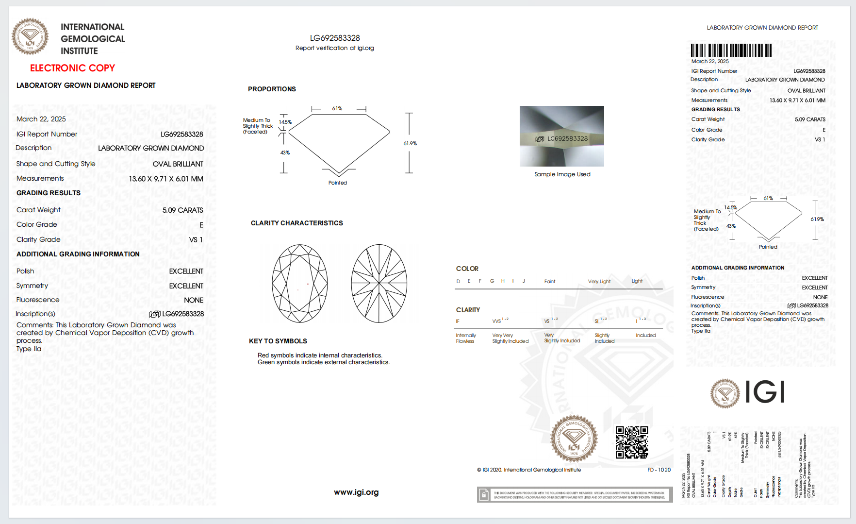 CENTER STONE DETAILS : 5ct Lab Round Diamond(Certificate:IGI)