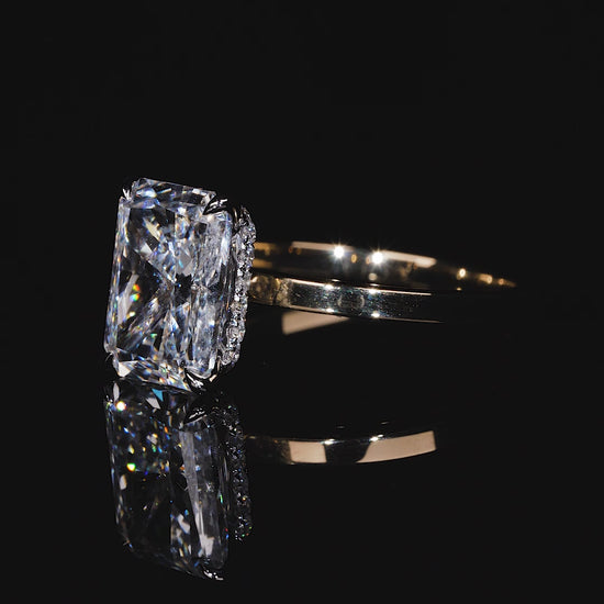14K White & Yellow Gold, 2-Tone, 3 CT, F VVS2, Radiant Cut, IGI , Flat Plain Band, Lab Grown Diamond Engagement Ring,Hidden Halo Over Prongs (ST 0003)