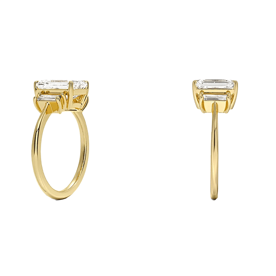 Vertical Baguette Three Stone Diamond Engagement Ring Emerald Cut 4ct (EM 4139)