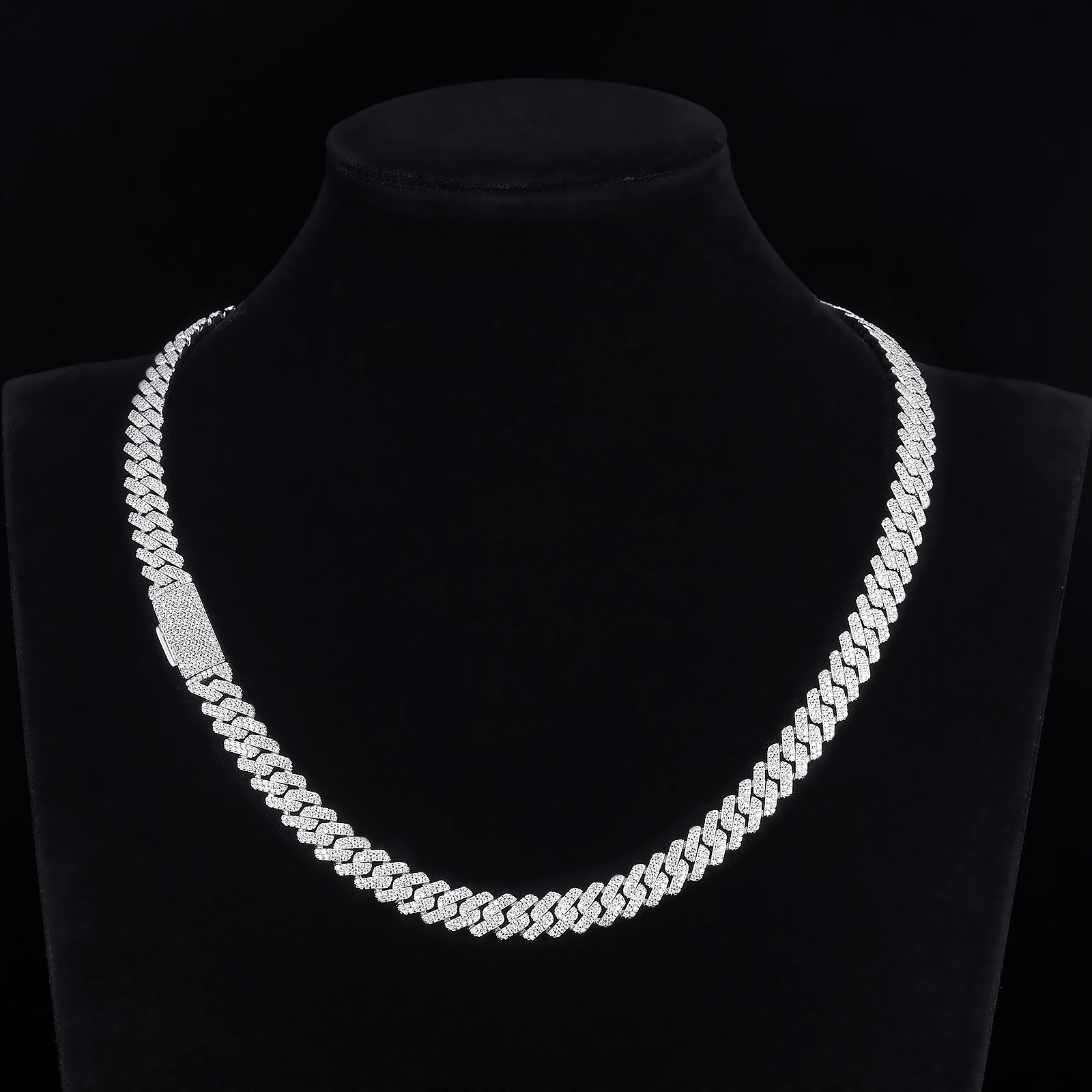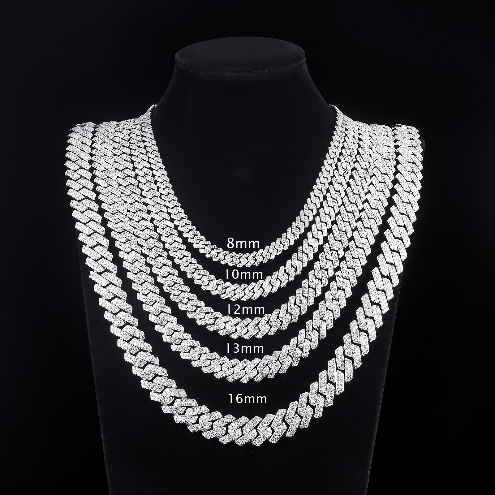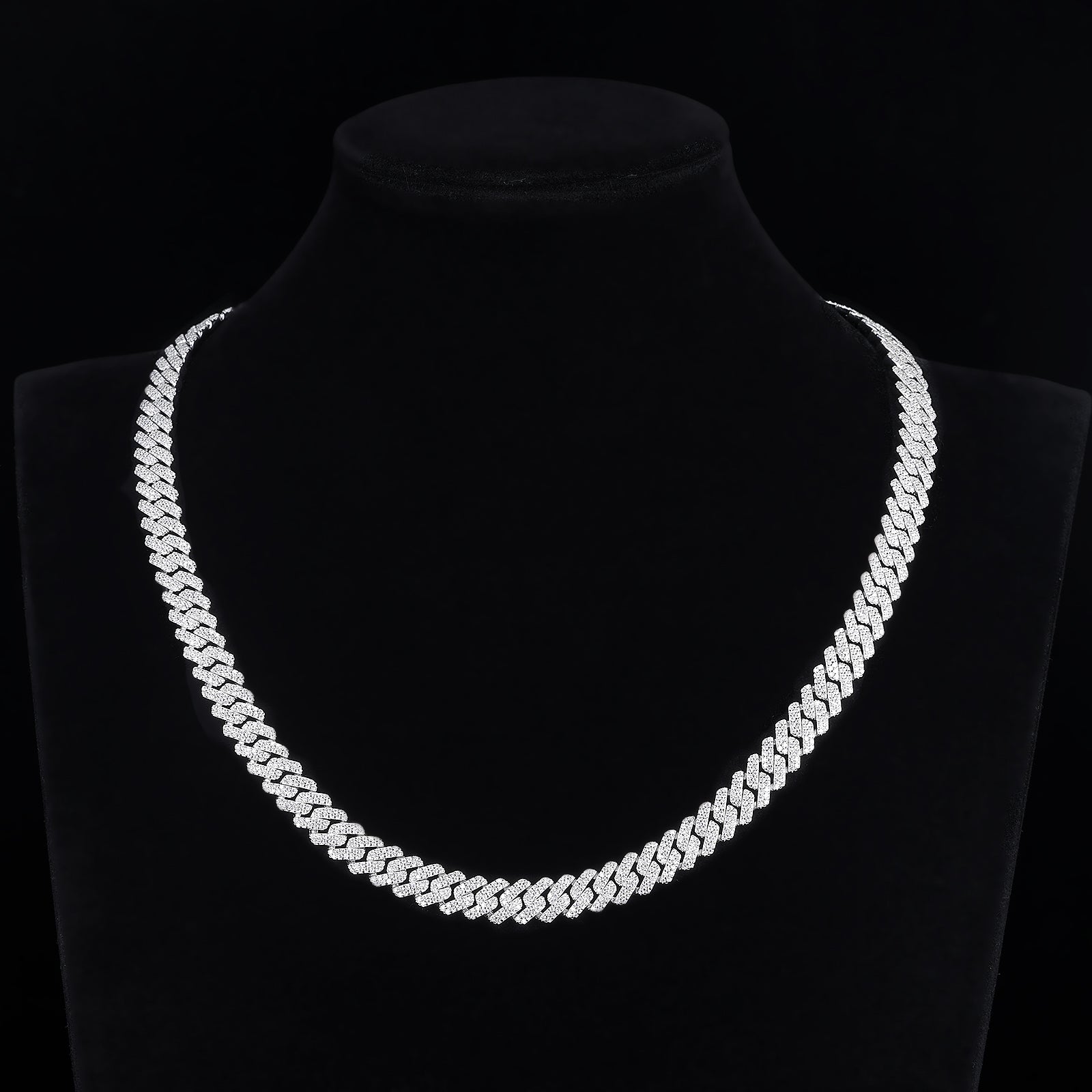 MOISSANITE Prong 8mm Necklace Rounded Prong Cuban Link Chain Necklace Choker,Solid 925 Sterling Silver 16"- 24" LengthsPASSES DIAMOND Tester
