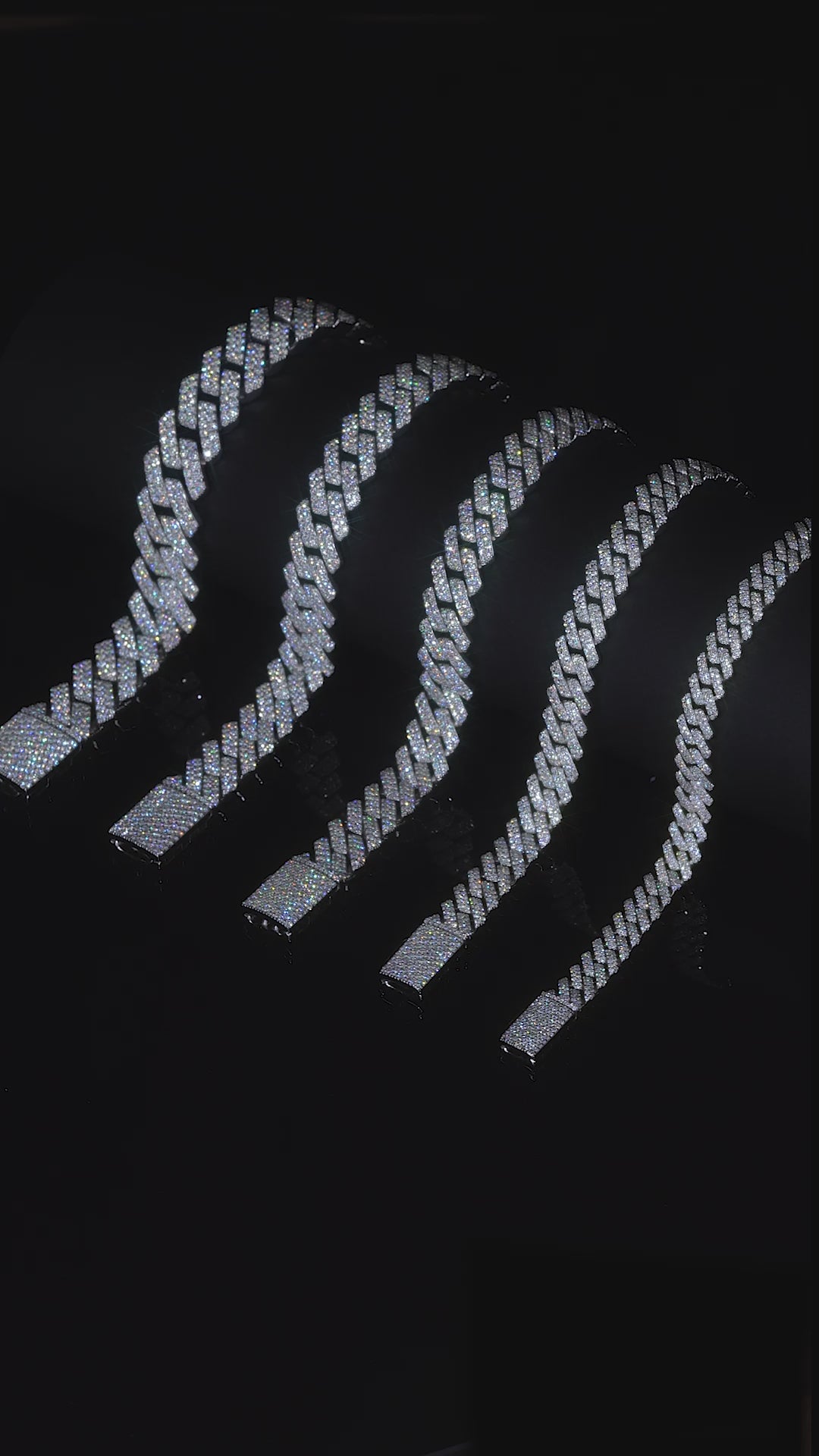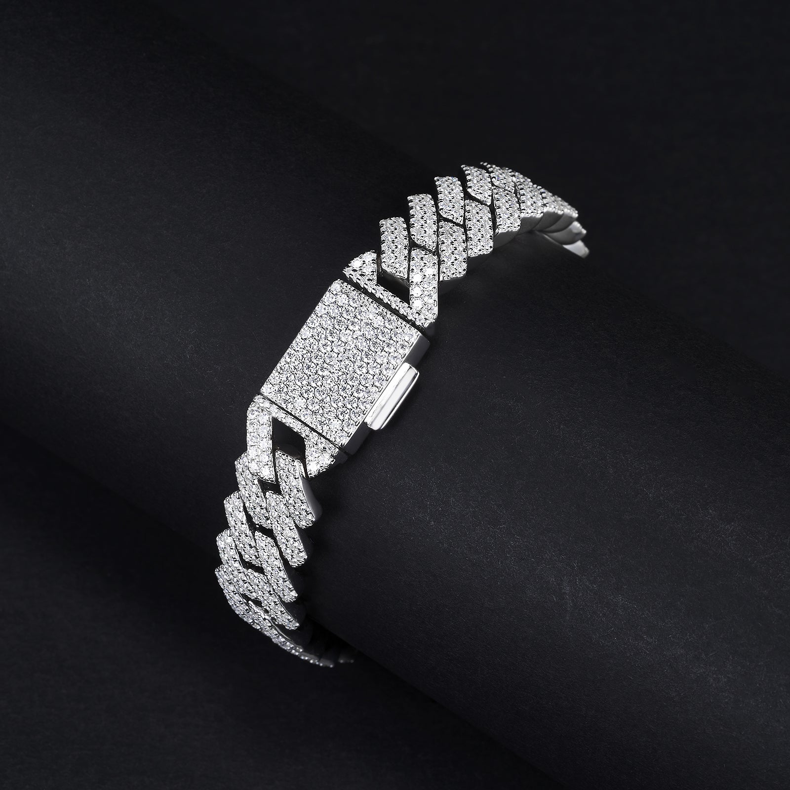 MOISSANITE Prong 13mm Bracelet Rounded Prong Cuban Link Chain Silver Chain, Solid 925 Sterling Silver,7"-8.5" Lengths, PASSES DIAMOND Tester