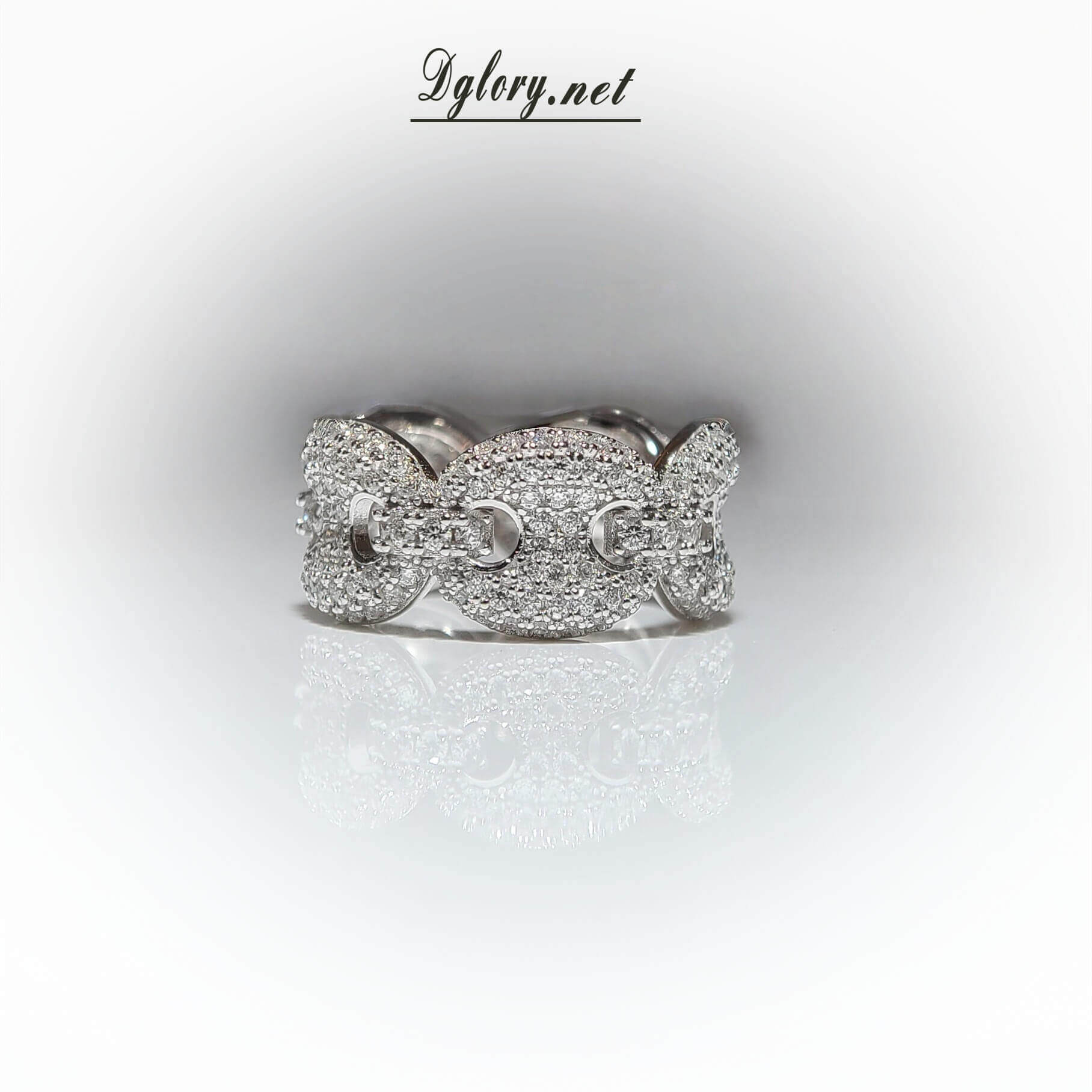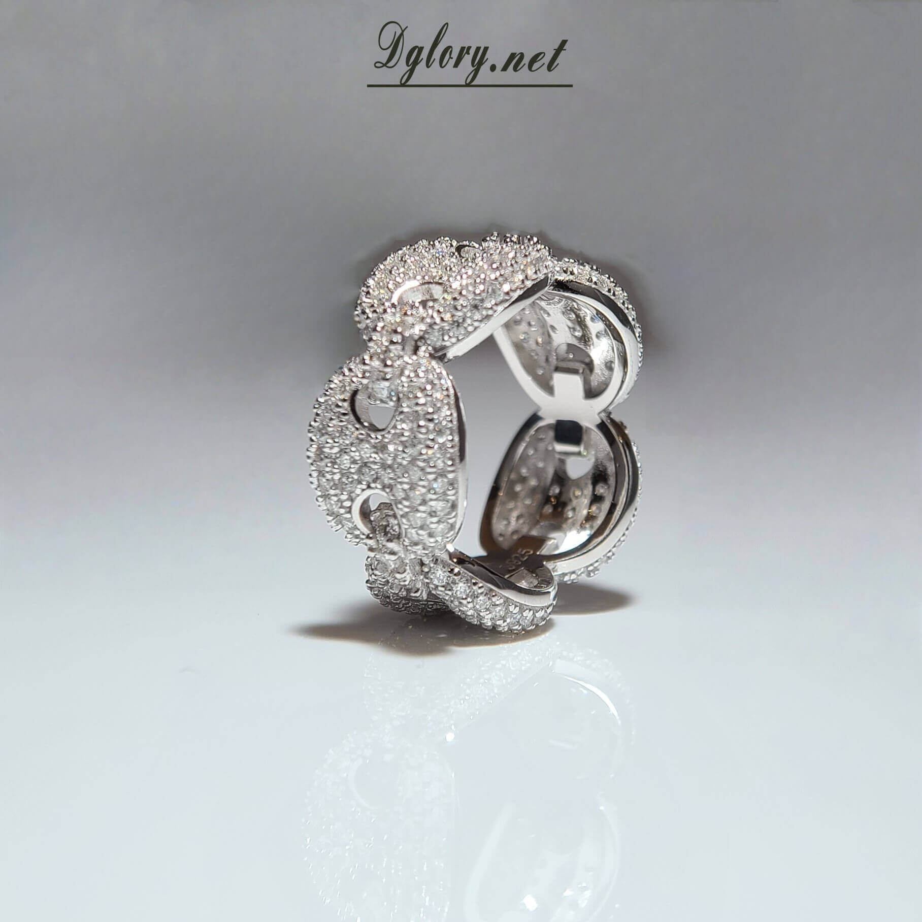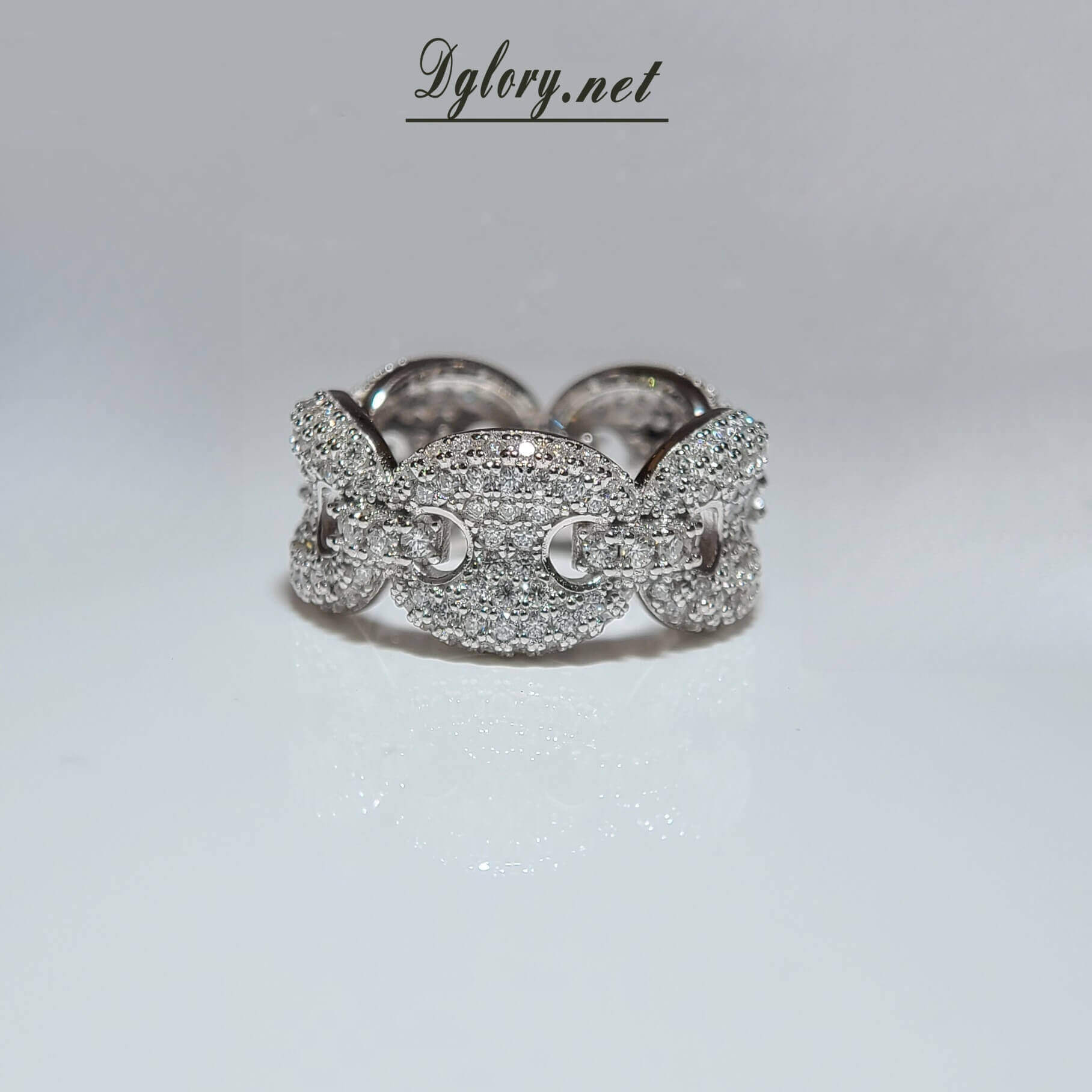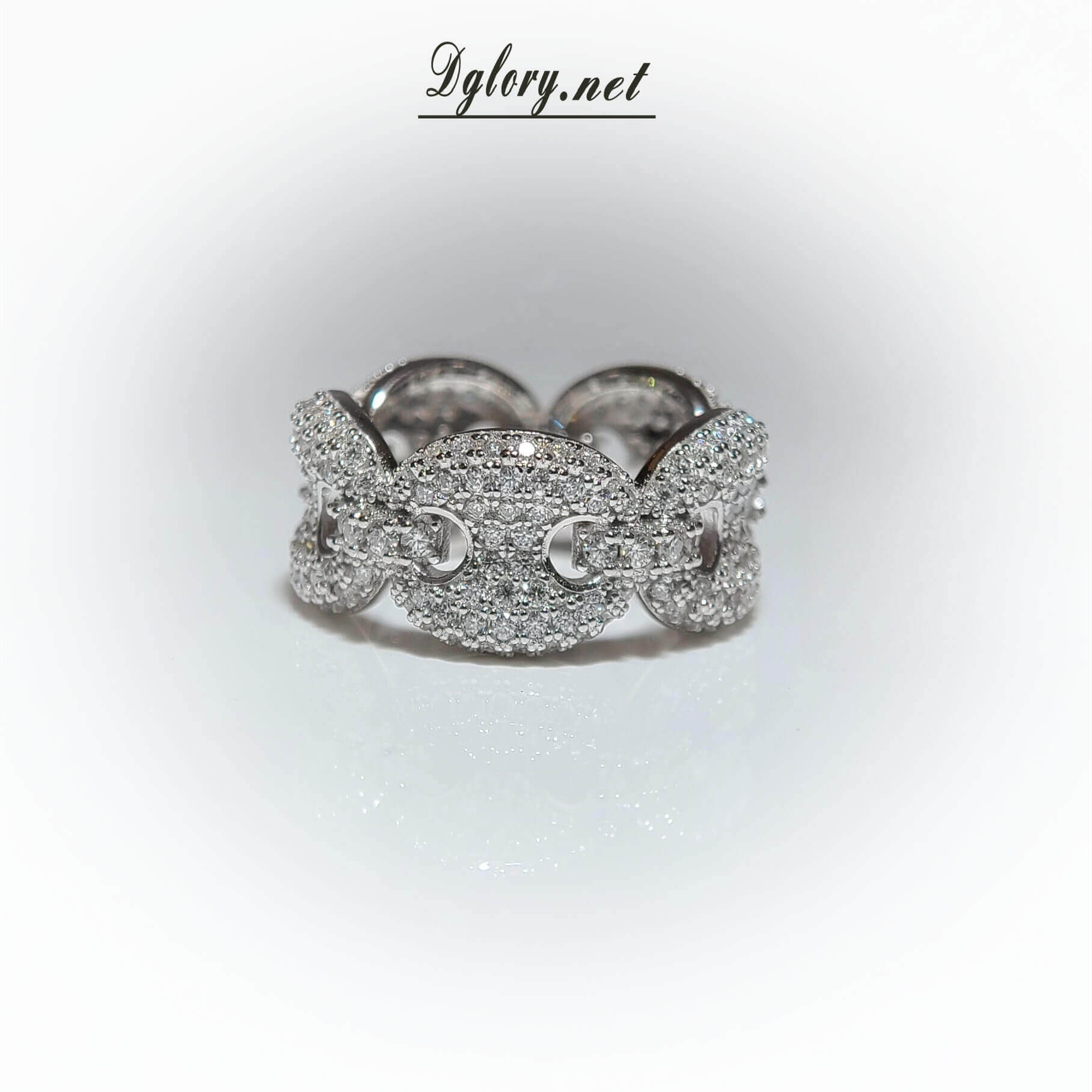 Moissanite Silver Mariner Chain Ring Eternity,S925 Sterling Silver,Rings Jewelry Ring for Men Gift for HimMen Wedding Band Puff Mariner Band